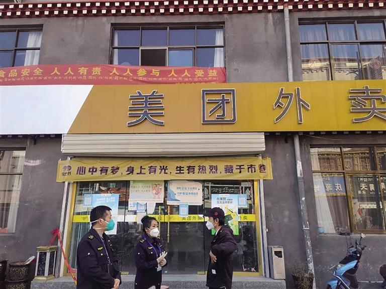 拉薩市市場監(jiān)管局對美團(tuán)拉薩分公司進(jìn)行現(xiàn)場指導(dǎo)。圖由 拉薩市市場監(jiān)管局 提供
