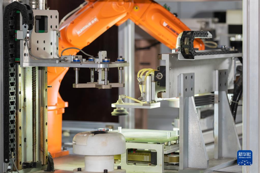 這是11月27日在拉薩市一家工廠內(nèi)拍攝的高原地區(qū)多功能烹飪炊具不粘鍋產(chǎn)品全機械自動化生產(chǎn)線的設(shè)備。新華社記者 黃耀漫 攝