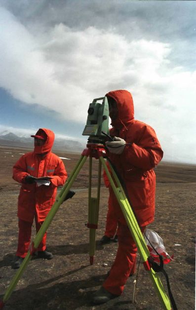 2001年4月,鐵道部第一設(shè)計院的勘測人員在海拔近5000米的四道梁加緊進(jìn)行青藏鐵路的勘測工作。在國務(wù)院批準(zhǔn)修建青藏鐵路后,鐵道部第一設(shè)計院的上千名勘測人員克服惡劣的自然條件,為青藏鐵路早日開工夜以繼日地工作。