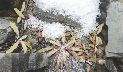 爬到海拔6200米左右時,距離采集隊員出發(fā)已經(jīng)過了幾個小時。隨行的向導輕輕哼起當?shù)毓爬系母柚{,采集隊員則俯身細心尋找。