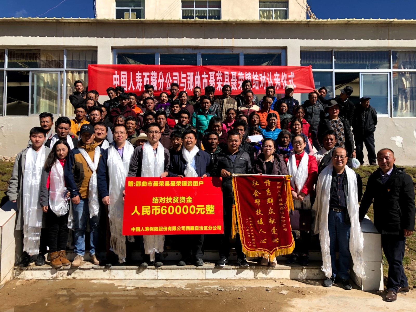 圖為中國人壽西藏分公司干部職工與那曲市聶榮縣聶榮鎮(zhèn)開展結(jié)對(duì)認(rèn)親幫扶活動(dòng)。