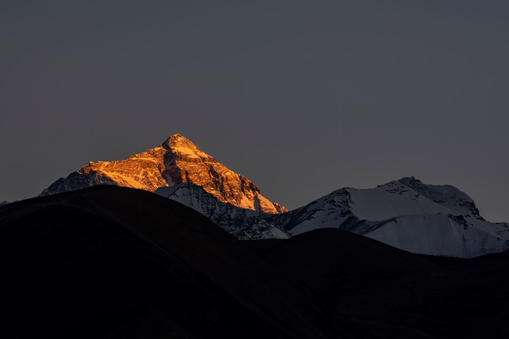 落日余暉灑在珠峰上,扎西宗鄉(xiāng)慢慢沉睡(2022年5月10日攝)。