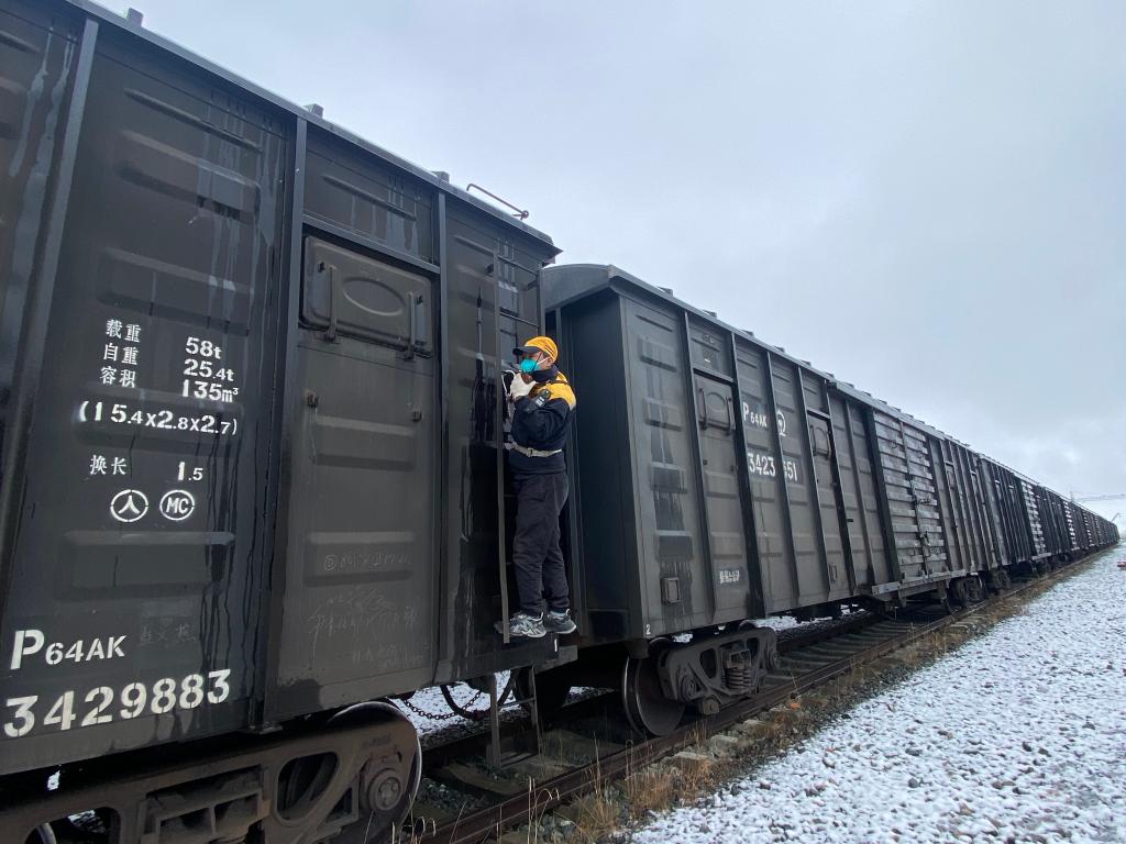 平均海拔超過4500米的西藏那曲市色尼區(qū)剛下完一場大雪,寒風呼嘯。重復爬車下車,彎腰摘接風管,大聲準確喊出聯(lián)控用語,緊接著撤除車列的防溜措施,青藏鐵路那曲火車站調車長達瓦次仁忙完一組調車作業(yè)后,嘴唇發(fā)紫、臉頰通紅,需要馬上吸氧才能緩過勁。
