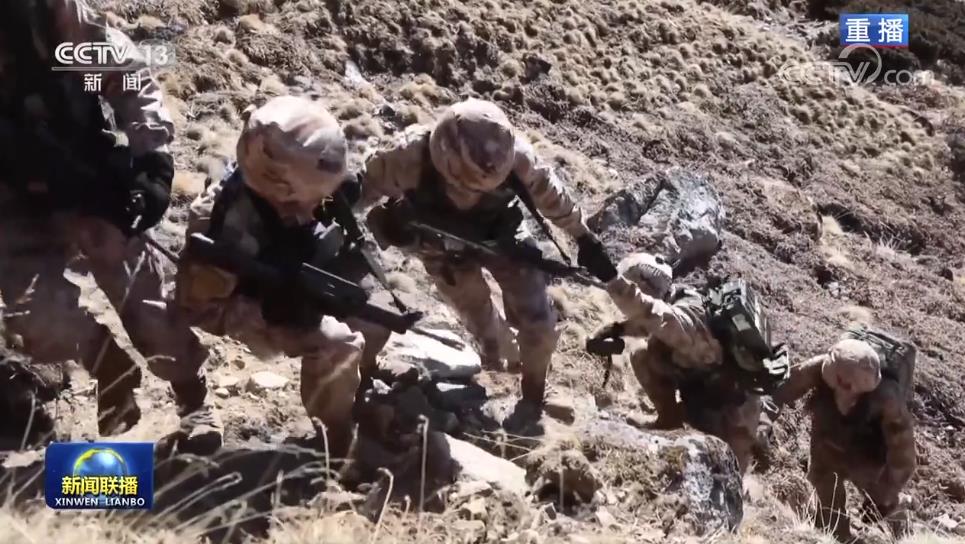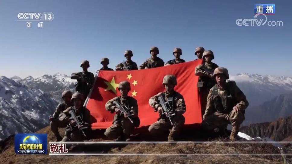 巡邏隊在中午登上海拔5000多米的高山點位,他們在這里展開國旗,宣示主權。