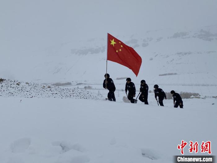 圖為移民管理警察雪中巡邏。資料圖 普蘭出入境邊防檢查站供圖