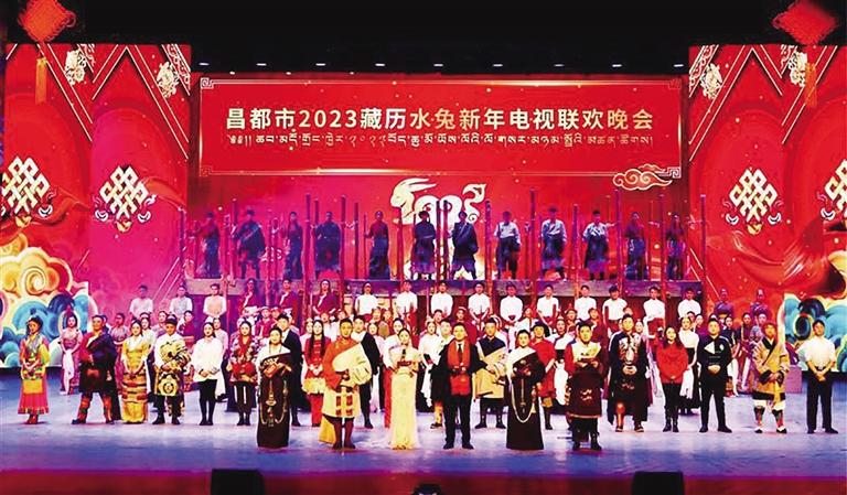 玉兔呈祥逢盛世,三江大地齊歡騰。2月4日晚,昌都劇院洋溢著歡樂喜慶的氛圍,以“初心續(xù)輝煌·逐夢新征程”為主題的昌都市2023藏歷新年電視聯(lián)歡晚會精彩上演,并進(jìn)行錄制。晚會現(xiàn)場邀請了昌都市各族干部群眾一同觀看。