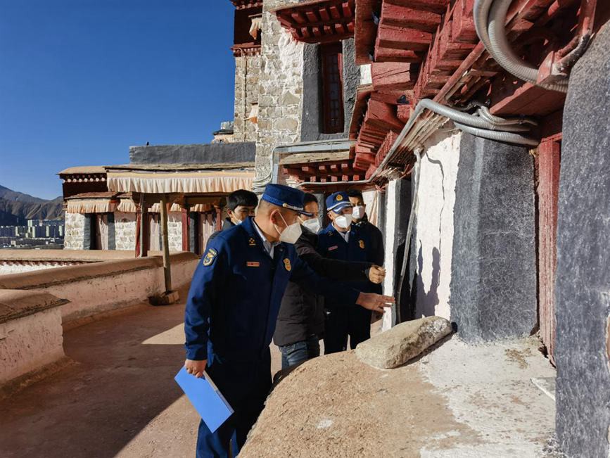 圖為檢查消防設(shè)備。圖片由布達(dá)拉宮消防救援大隊(duì)提供