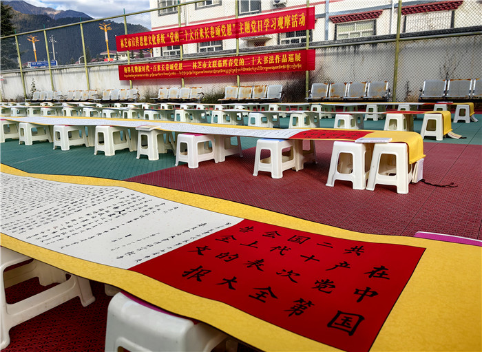 創(chuàng)新載體,全方位宣傳。林芝市統(tǒng)籌各類宣傳資源,線上線下同頻共振,全方位、多角度、寬領(lǐng)域、深層次宣傳黨的二十大精神和區(qū)黨委十屆三次全會、市委二屆三次全會精神,營造學(xué)習(xí)宣傳的濃厚氛圍。一是新聞宣傳強(qiáng)信心。林芝報、林芝廣播電視臺、西藏林芝網(wǎng)、微林芝等市屬主流媒體紛紛開設(shè)《學(xué)習(xí)貫徹黨的二十大》《新時代新征程新偉業(yè)》等多個專題專欄,持續(xù)推出學(xué)習(xí)貫徹黨的二十大精神相關(guān)報道。截至目前,共刊播《基層宣講員讓黨的二十大精神翩翩飛入百姓家》《軍民共話美好未來 繪就美麗鄉(xiāng)村新畫卷》等相關(guān)新聞2500余條。二是社會面宣傳筑同心。采取“屏、板、欄、幅”立體宣傳方式,在全市各級黨政機(jī)關(guān)和企事業(yè)單位大門LED電子顯示屏以及市、縣城區(qū)主要街道、跨街龍門、出租車頂燈、汽車站等公共場所的宣傳媒介上滾動播放自治區(qū)統(tǒng)一印發(fā)的宣傳標(biāo)語1.2萬余條次,更新懸掛國旗3.5萬余面,制作發(fā)放宣傳海報1.5萬張、宣傳品2500余個,形成抬頭可見、隨處可學(xué)的濃厚社會氛圍。察隅縣上察隅鎮(zhèn)遲巴村村“兩委”和駐村工作隊用彩色粉筆繪制黨的二十大、“新黨章”等主題黑板報,用畫筆向村民傳遞黨的最新政策,深受群眾喜愛。三是網(wǎng)絡(luò)宣傳聚民心。充分發(fā)揮新媒體平臺宣傳形式豐富的特點,持續(xù)推送重磅報道和重點文章,策劃打造一批融媒體產(chǎn)品,在全網(wǎng)迅速興起學(xué)習(xí)宣傳貫徹會議精神熱潮。市委網(wǎng)信辦策劃制作短視頻《學(xué)習(xí)黨的二十大精神 談心得感悟》、“林芝融媒”抖音號推出《二十大時光》微視頻,將鏡頭對準(zhǔn)二十大代表、基層黨員群眾,展現(xiàn)全市干部群眾積極向上的良好風(fēng)貌?!鞍鸵巳诿健倍兑籼柾瞥觥包h的二十大精神快問快答”系列活動,線上線下聯(lián)動學(xué)習(xí),推動黨的二十大精神入腦入心。“察隅融媒”抖音號策劃開展《鄉(xiāng)村振興正當(dāng)時》黨的二十大主題抖音直播活動,通過網(wǎng)絡(luò)直觀展現(xiàn)新時代察隅新農(nóng)村、新氣象、新希望。目前已開展7場直播活動,觀看人數(shù)達(dá)10萬人次。四是文藝宣傳暖人心。充分發(fā)揮市、縣(區(qū))、村三級文藝文化團(tuán)體作用,組織開展“深入生活 扎根人民”“幸福不忘共產(chǎn)黨 陽光路上夢起航”等各類文藝文化活動,精心打造文藝精品力作,用文藝活動、文藝作品溫暖人心。截至目前,各級文藝演出隊開展文藝匯演293場次,參與人數(shù)4.2萬余人次;創(chuàng)作推出音樂作品《沐浴幸?!?、攝影作品《我和國旗》、書法美術(shù)作品《建功新時代 奮進(jìn)新征程》、文學(xué)作品《黨的光輝照萬家》等文藝作品300余個。波密縣完全小學(xué)在崗云杉林景區(qū)組織開展“學(xué)習(xí)黨的二十大,爭做好少年”采風(fēng)寫生活動,學(xué)生們以文藝創(chuàng)作的形式學(xué)習(xí)黨的二十大精神,并將學(xué)習(xí)成果轉(zhuǎn)化到作品中。市民族藝術(shù)團(tuán)以深入挖掘歷史文化、講好紅色故事為主題,籌拍了微電影《立定村屹立的紅旗》。市文聯(lián)書法美術(shù)家協(xié)會理事茹輝春同志,在黨的二十大召開后用行、楷兩種書法形式撰寫了黨的二十大報告全文書卷,書卷共有八卷,每卷長30米。市委宣傳部、市文廣局、市文聯(lián)組織市書法美術(shù)家協(xié)會開展“禮贊二十大·送福進(jìn)萬家”林芝市2023年新春書法美術(shù)家“深入生活 扎根人民”送祝福和采風(fēng)活動,共開展送春聯(lián)活動15場次,送出對聯(lián)、福字、掛軸、繪畫等作品8950幅(對),服務(wù)群眾6700余人次。