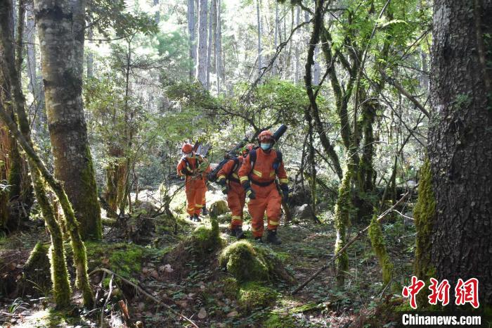 圖為林芝森林消防組成巡護(hù)分隊(duì)深入林區(qū)排查隱患。李國(guó)燾 攝