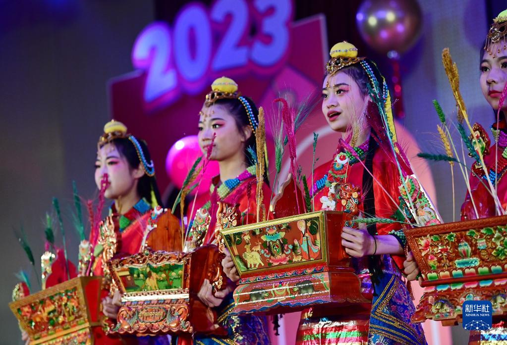 2月21日是藏歷水兔新年,陜西省唯一一所西藏班初中學(xué)校西安市浐灞第一中學(xué),舉行了藏歷新年團(tuán)拜活動(dòng)。漢藏師生們通過表演歌舞、情景劇及藏樂器彈唱等節(jié)目,以及舉辦陜藏美食文化展等活動(dòng),共慶藏歷新年。