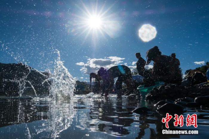 藏族民眾“沐浴節(jié)”期間在拉薩河邊沐浴。 何蓬磊 攝