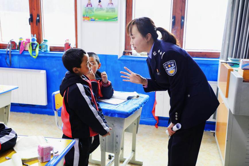 對(duì)于生活在大山深處的孩子們來(lái)說(shuō),外面的世界充滿吸引力,張騰心和侯莉就是他們與外面世界連結(jié)的橋梁。因此,去學(xué)校上課是她們?nèi)粘9ぷ髦凶钪匾囊粋€(gè)環(huán)節(jié)?!拔覀兌己芟矚g警察媽媽,教我們寫作業(yè),給我們買零食,還會(huì)講很多有趣的故事?!?歲的扎西開心地說(shuō)。