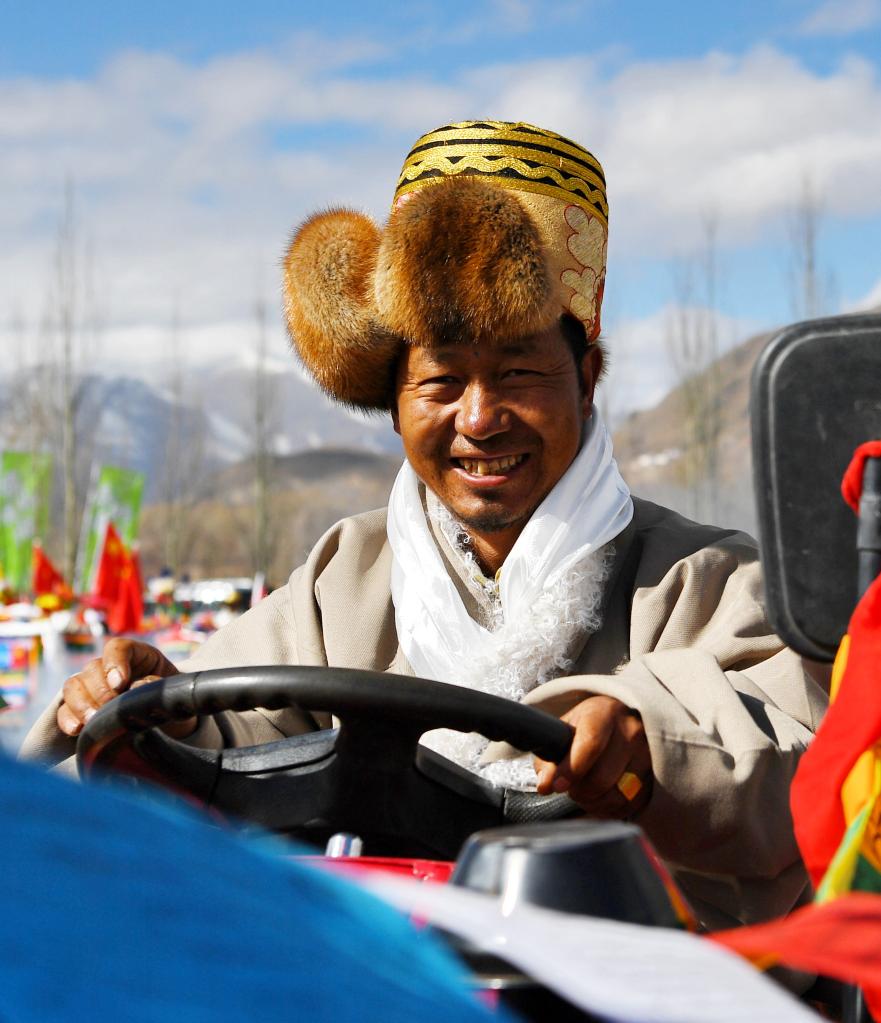 西藏林周縣強嘎村的春耕儀式上駕駛農(nóng)機的村民(3月16日攝)。新華社記者 張汝鋒 攝