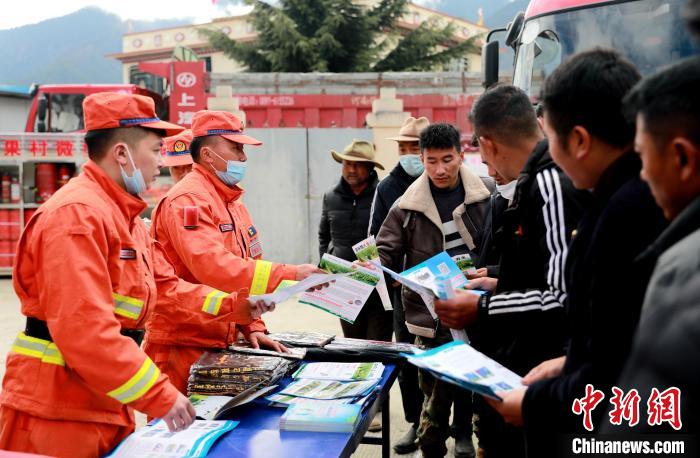 林芝市森林消防支隊(duì)指戰(zhàn)員在進(jìn)行防火宣傳知識(shí)講解。西繞拉翁 攝