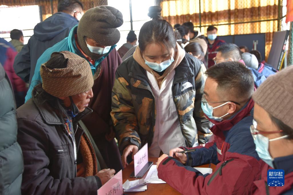 午后時(shí)分,天空仍然飄著小雪,來自北京援藏醫(yī)療隊(duì)的15名醫(yī)生剛下車,便馬不停蹄地開始工作。據(jù)援藏醫(yī)療隊(duì)醫(yī)務(wù)處處長(zhǎng)趙萬全介紹,本次義診前,醫(yī)療隊(duì)已提前了解當(dāng)?shù)厝罕姷亩喟l(fā)病類型,攜帶了充足的降血壓、常用抗生素等藥品。與此同時(shí),他們還為納木湖鄉(xiāng)群眾開展“分級(jí)診療”,“把脈”群眾的健康狀況,對(duì)群眾所患病癥的進(jìn)一步醫(yī)治給出相應(yīng)建議。