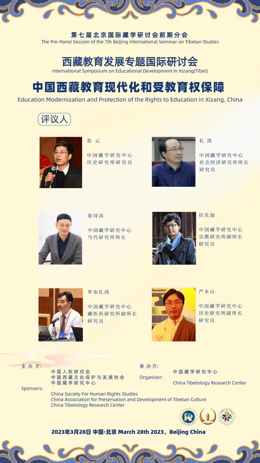 第七屆北京國際藏學研討會前期分會——西藏教育發(fā)展專題國際研討會,將于2023年3月28日下午14:30在北京召開。本次會議的主題是“中國西藏教育現(xiàn)代化和受教育權保障”。