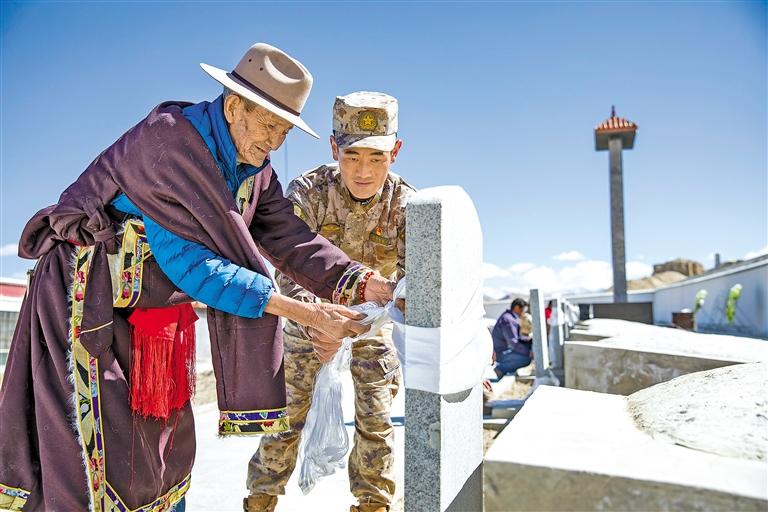 圖為軍民代表在阿里地區(qū)札達縣烈士陵園緬懷革命烈士。劉曉東 記者 次仁平措 攝