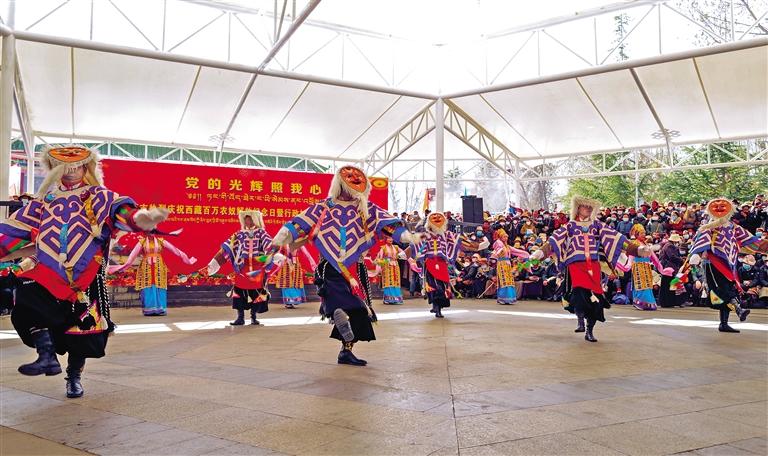 圖為拉薩市熱烈慶祝西藏百萬農(nóng)奴解放紀念日暨行政村文藝演出隊文藝展演現(xiàn)場。 記者 丹增群培 攝