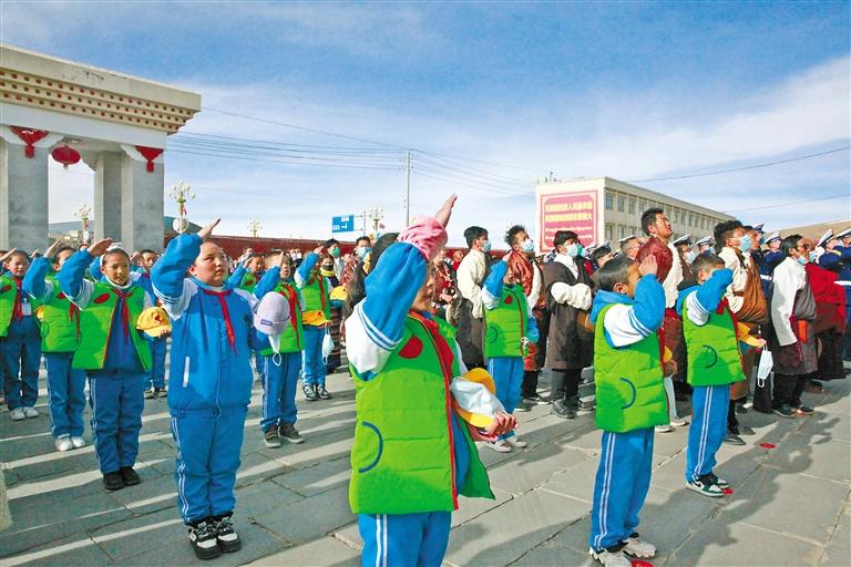 28日,西藏大學、拉薩市教育局組織學生開展“升國旗、唱國歌”活動,并觀看《復興之路》和《人格的力量——中國共產(chǎn)黨人的家國情懷》兩個直播課堂,革命先烈為實現(xiàn)國家解放和民族復興前仆后繼、視死如歸的英雄事跡深深打動了每一名學生。西藏大學學生向秋雨說:“我們要以史為鑒,開創(chuàng)未來,扎實學好專業(yè)知識,維護祖國統(tǒng)一,鑄牢中華民族共同體意識,讓青春之花在祖國最需要的地方絢麗綻放?!?/p>