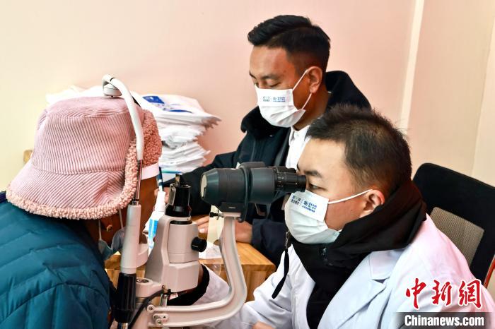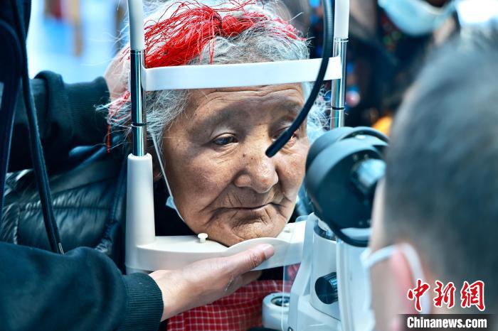 圖為專業(yè)眼科醫(yī)生為老人檢測(cè)視力。 格桑 攝