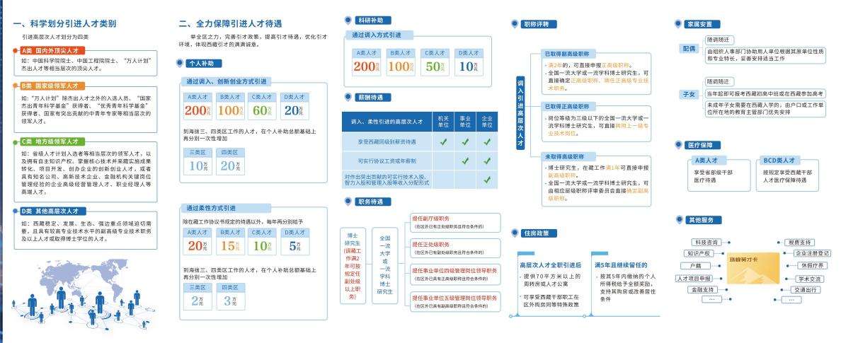 據(jù)悉,近年來,西藏自治區(qū)深入實(shí)施人才“育、引、用、留”四大工程,制定出臺了《關(guān)于加強(qiáng)和改進(jìn)新時代西藏人才工作的若干措施(試行)》,科學(xué)劃分引進(jìn)人才類別,將引進(jìn)高層次人才劃分為A、B、C、D四類。在個人補(bǔ)助、科研補(bǔ)助、薪酬待遇、職務(wù)待遇、職稱評聘、住房政策、家屬安置、醫(yī)療保障等方面全力保障引進(jìn)人才待遇。同時,千方百計成就引進(jìn)人才,支持引進(jìn)人才創(chuàng)新創(chuàng)業(yè),激勵引進(jìn)人才成果轉(zhuǎn)化,實(shí)行配套表彰獎勵政策。此外,在簡化優(yōu)化人才引進(jìn)程序、實(shí)施引才伯樂激勵措施方面均有明確政策。