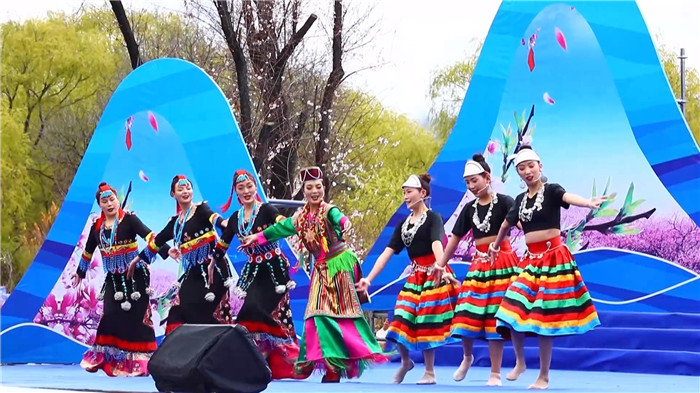 開幕式在精彩的文藝演出中拉開帷幕,農(nóng)牧民群眾身著節(jié)日盛裝,各具特色的歌曲、舞蹈輪番上演,亮點紛呈的節(jié)目讓現(xiàn)場觀眾大飽眼福,也為“山水米林·花谷藥州”增添了與眾不同的人文意境。文藝演出以雪山、雅江、野生桃花為天然背景,進(jìn)一步傳承弘揚了米林民俗文化、地域特色、非遺特色,多形式展示了米林璀璨民俗風(fēng)情。