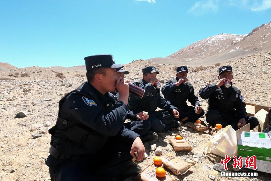 近日,西藏阿里邊境管理支隊(duì)扎西崗邊境派出所組織民警和護(hù)邊員通過(guò)乘車(chē)巡邏和徒步巡邏相結(jié)合的方式,前往海拔4800米的“守邊固邊第一村”——典角村古格川執(zhí)勤點(diǎn)巡邏,經(jīng)過(guò)一個(gè)小時(shí)的車(chē)巡和一個(gè)小時(shí)的徒步巡邏,民警到達(dá)了古格川執(zhí)勤點(diǎn)。通過(guò)巡邏,及時(shí)掌握了邊境一線(xiàn)情況,確保了邊境轄區(qū)安全穩(wěn)定。圖為移民管理警察巡邏途中休息。郭遠(yuǎn)敬 攝