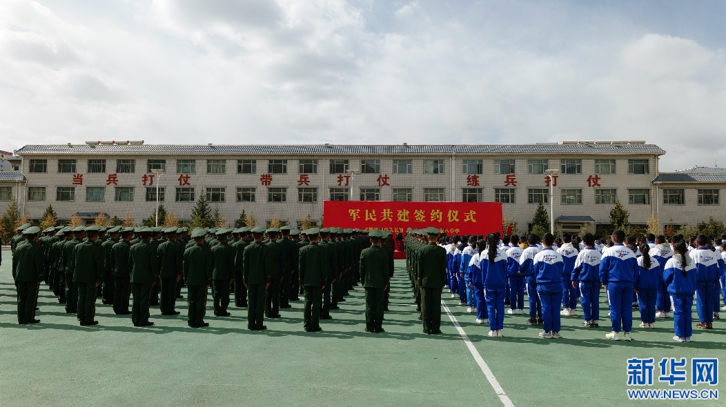 14日上午,武警西藏總隊(duì)某部與拉薩市第八中學(xué)在拉薩舉行軍民聯(lián)誼共育簽約儀式,來自武警總隊(duì)某部的官兵和拉薩市第八中學(xué)的師生約400人參加了簽約儀式。