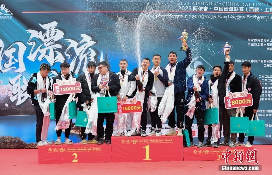 圖為激流漂流筏繞標(biāo)賽頒獎(jiǎng)典禮現(xiàn)場(chǎng)。中新社記者 貢嘎來松 攝