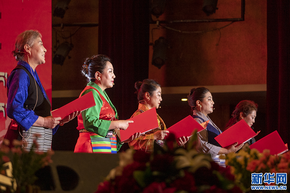 4月23日,拉薩萌升老年大學(xué)學(xué)員在“夕陽紅”西藏老年閱讀活動(dòng)現(xiàn)場朗誦。新華網(wǎng) 旦增努布 攝
