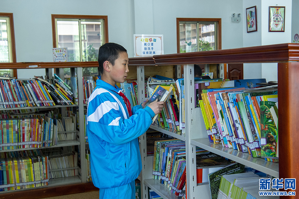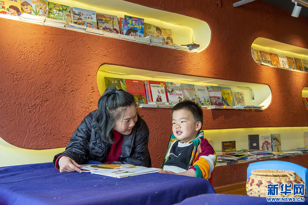4月23日,一對母子在書店里閱讀繪本。新華網(wǎng) 旦增努布 攝