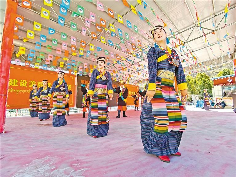 圖為瓊結(jié)縣藝術(shù)團下鄉(xiāng)演出活動中,歌舞《幸福小康》表演場景。記者 巴桑旺姆 攝