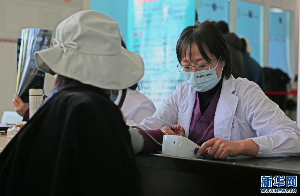 圖為“京藏?cái)y手,護(hù)佑藍(lán)唇”義診活動(dòng)現(xiàn)場,醫(yī)生在為患者測量血壓。(5月5日攝)