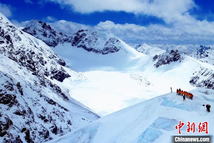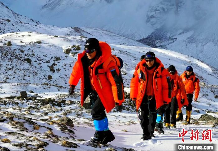 國家高山救援拉薩大隊隊員向海拔6010米洛堆峰進發(fā)?!〖?攝