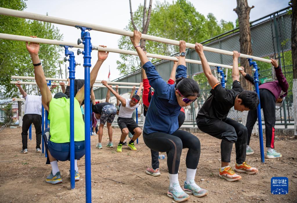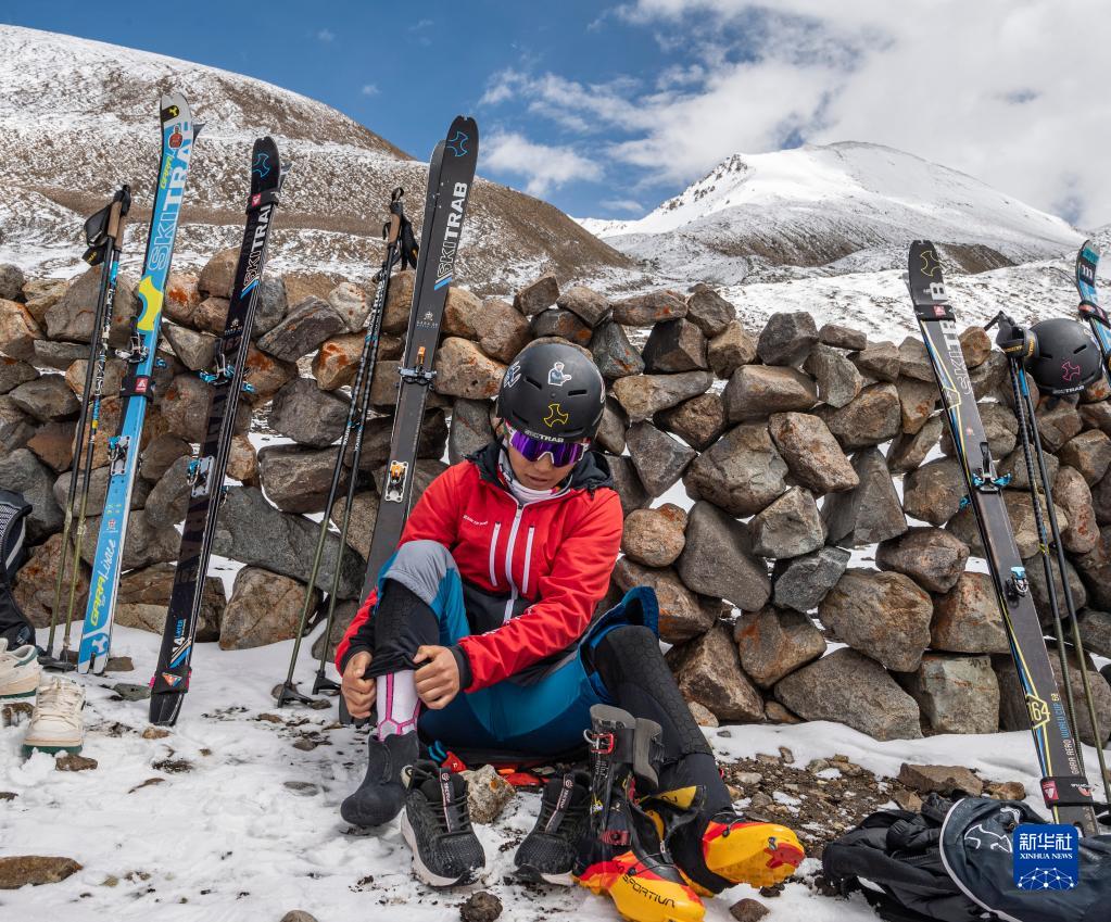 在西藏拉薩市當(dāng)雄縣羊八井鎮(zhèn),玉珍拉姆穿戴訓(xùn)練裝備(5月2日攝)。新華社記者 孫非 攝
