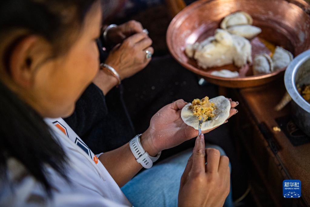 在位于西藏林芝市工布江達(dá)縣仲莎鄉(xiāng)的家中,玉珍拉姆在做土豆包子(4月24日攝)。新華社記者 孫非 攝