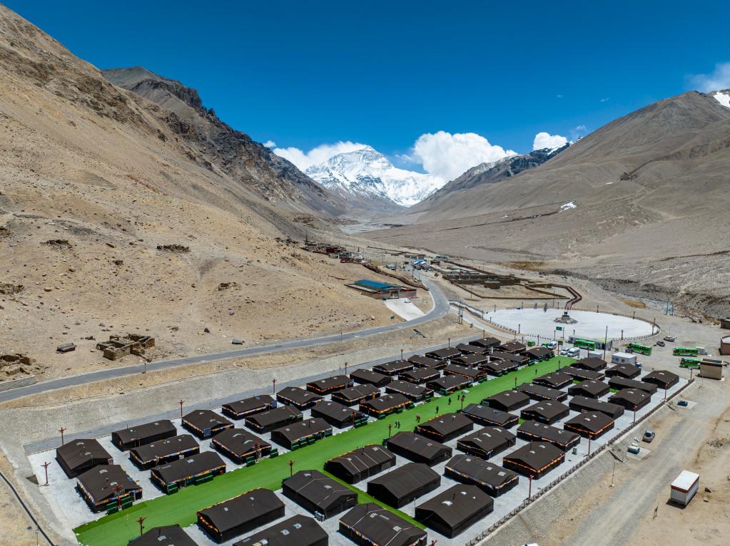 圖為珠峰游客大本營的帳篷旅館(5月20日攝,無人機照片)。新華社記者孫非 攝
