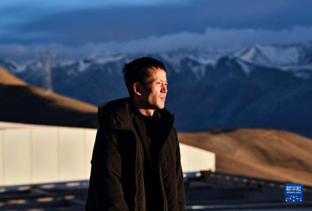 5月24日,日落時(shí)分,在阿里天文臺,尤顯龍走出望遠(yuǎn)鏡圓頂。新華社記者 費(fèi)茂華 攝