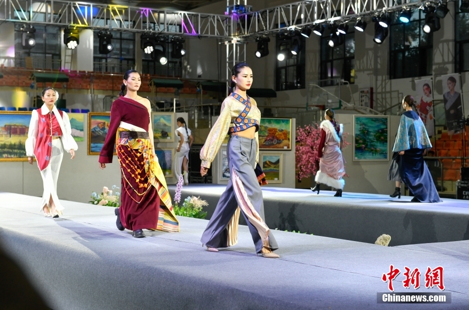 5月26日晚,西藏拉薩,西藏職業(yè)技術(shù)學(xué)院旅游與文化學(xué)院舉辦服裝與服飾設(shè)計(jì)專業(yè)2020級(jí)畢業(yè)生畢業(yè)作品展演活動(dòng)。本次展演活動(dòng)分為傳承、相遇、未來(lái)三部分,展現(xiàn)藏族傳統(tǒng)服裝與現(xiàn)代服裝設(shè)計(jì)的相遇與碰撞。中新社記者 貢嘎來(lái)松 攝