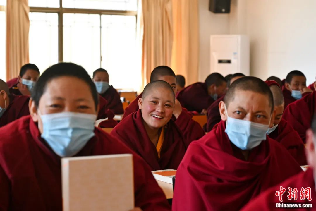 西藏佛學(xué)院迎來新學(xué)期,學(xué)員等待上課。趙朗 攝
