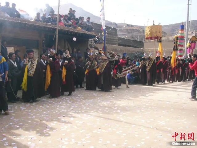 2、舞蹈在村莊廟宇外的一個(gè)大廣場上進(jìn)行,舞者主要是僧侶。