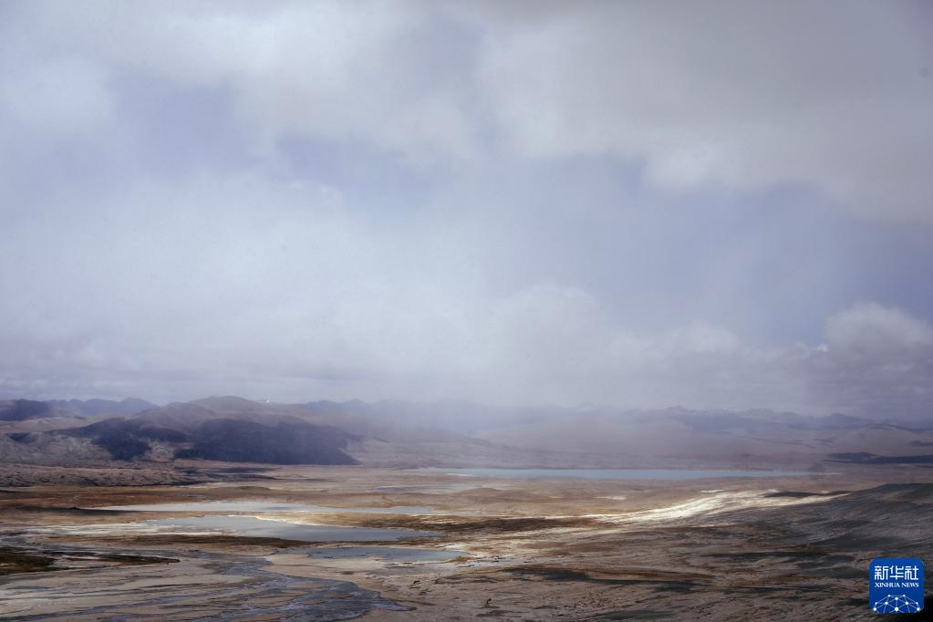 杰瑪央宗冰川融化后形成的河床(5月31日攝,無人機(jī)照片)。新華社記者 晉美多吉 攝