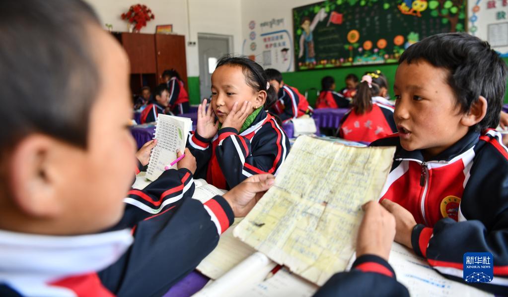 扎西宗鄉(xiāng)完全小學(xué)的學(xué)生在上藏文課(6月5日攝)。新華社記者 晉美多吉 攝