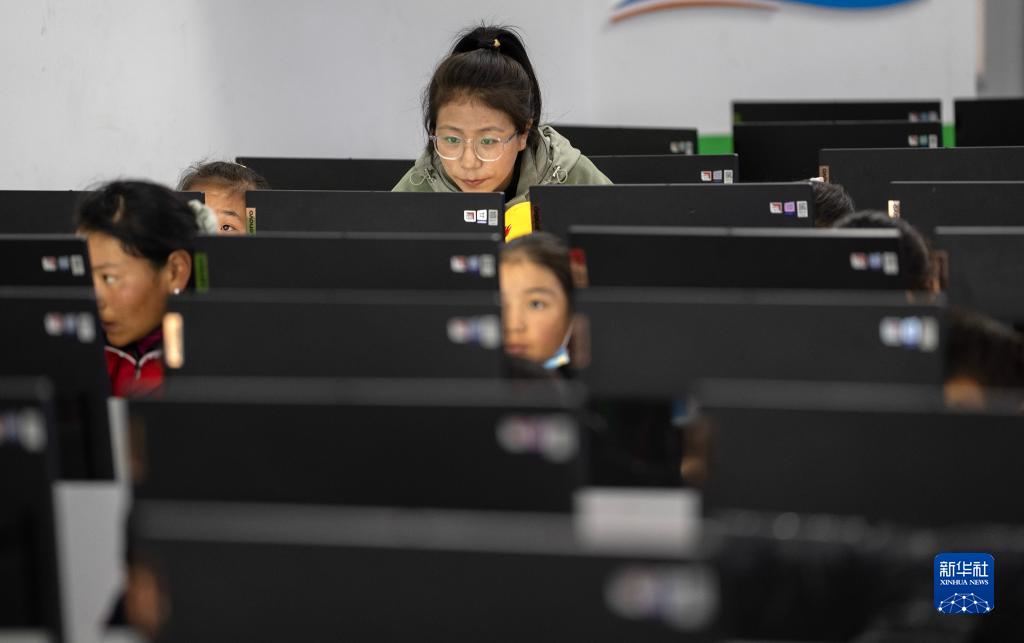 6月5日,拉巴卓瑪老師在給扎西宗鄉(xiāng)完全小學(xué)六年級(jí)的學(xué)生上計(jì)算機(jī)課。新華社記者 費(fèi)茂華 攝
