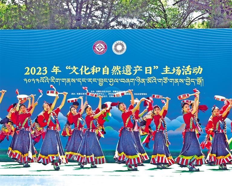 圖為西藏2023年“文化和自然遺產(chǎn)日”主場活動現(xiàn)場,西藏大學藝術(shù)學院帶來的舞蹈《東洛熱巴》。記者 旦增蘭澤 攝
