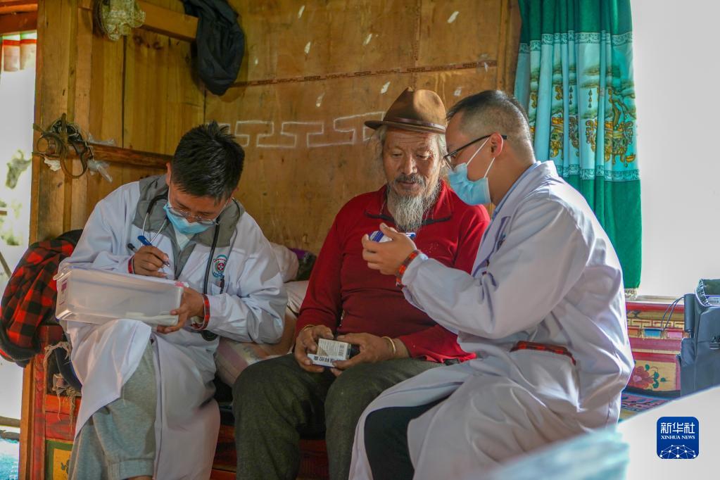 “這個村子的年輕人多外出務(wù)工,很多患有慢性疾病的老人行動不便,我們就送醫(yī)上門。”王振疆醫(yī)生介紹說。經(jīng)過多年援藏工作的摸索,醫(yī)療隊(duì)針對當(dāng)?shù)靥攸c(diǎn)建立起了一套高效的機(jī)制,而送醫(yī)上門是這個機(jī)制中非常重要的一環(huán):村醫(yī)把村里病人的情況上報給鄉(xiāng)衛(wèi)生院,鄉(xiāng)衛(wèi)生院再把各個村的情況匯總之后上報到援藏醫(yī)療隊(duì),援藏醫(yī)療隊(duì)根據(jù)病人的情況提供訂單式的上門服務(wù)。雖然今年2月底才抵達(dá)西藏,但王振疆、陳冰和王彤旭已經(jīng)參加了5次這樣的送醫(yī)上門活動。