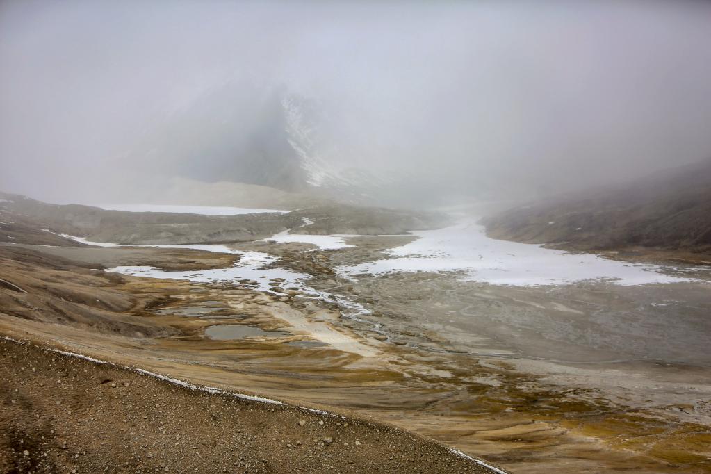 如果說(shuō)札達(dá)土林和古格王國(guó)遺址給人的印象可以用宏偉壯觀來(lái)形容的話,那么雅魯藏布江發(fā)源地——杰瑪央宗冰川給人帶來(lái)的則是蕭瑟與遼闊的景象。我們趕到杰瑪央宗冰川的時(shí)候風(fēng)雪交加。凜冽的寒風(fēng)呼呼地刮在臉上像刀割一樣,風(fēng)吹得人幾乎睜不開眼睛。作為本次報(bào)道的視頻記者之一,我當(dāng)時(shí)最擔(dān)心的是機(jī)器拿不穩(wěn),拍攝畫面出現(xiàn)抖動(dòng)的情況,所以拍攝全程我都把手中的相機(jī)攥得很緊。