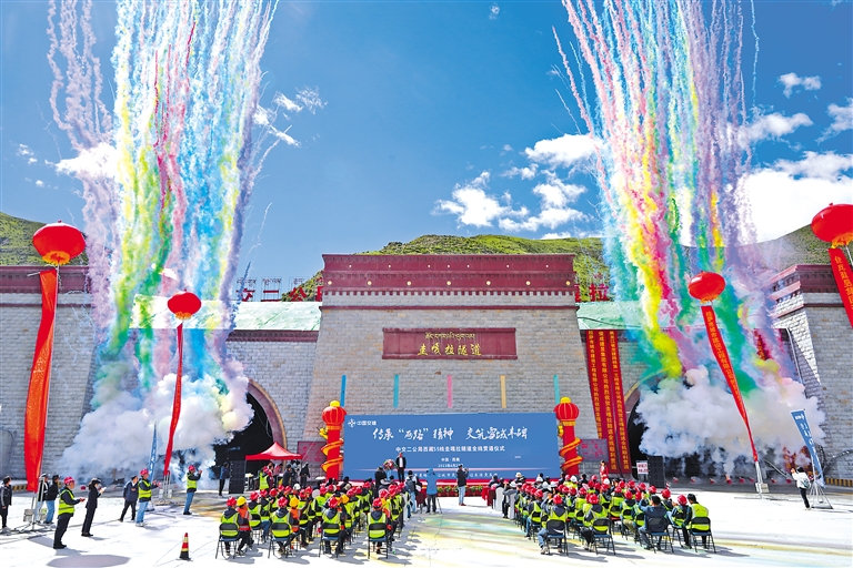 圖為西藏S5線圭嘎拉隧道全線貫通儀式現(xiàn)場(chǎng)。貢曲羅杰 央金 攝