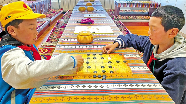 圖為該校學(xué)生在課余時(shí)間下藏棋。記者 格桑倫珠 攝