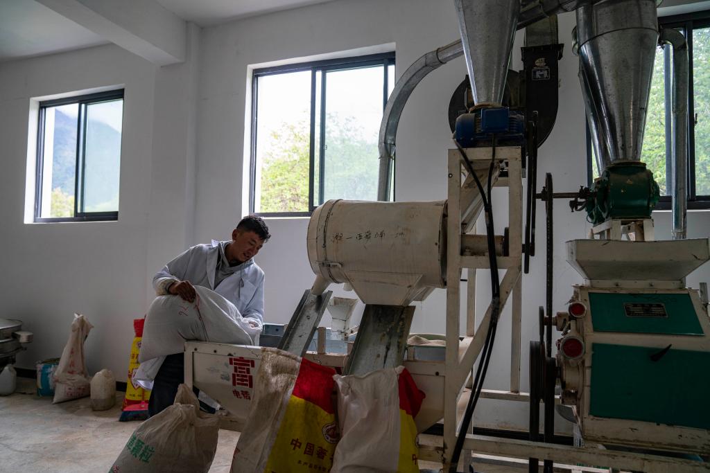 在吉巴鄉(xiāng)吉巴村蕎麥種植加工農牧民專業(yè)合作社,一名員工正在加工蕎麥(6月27日攝)。新華社記者 孫非 攝